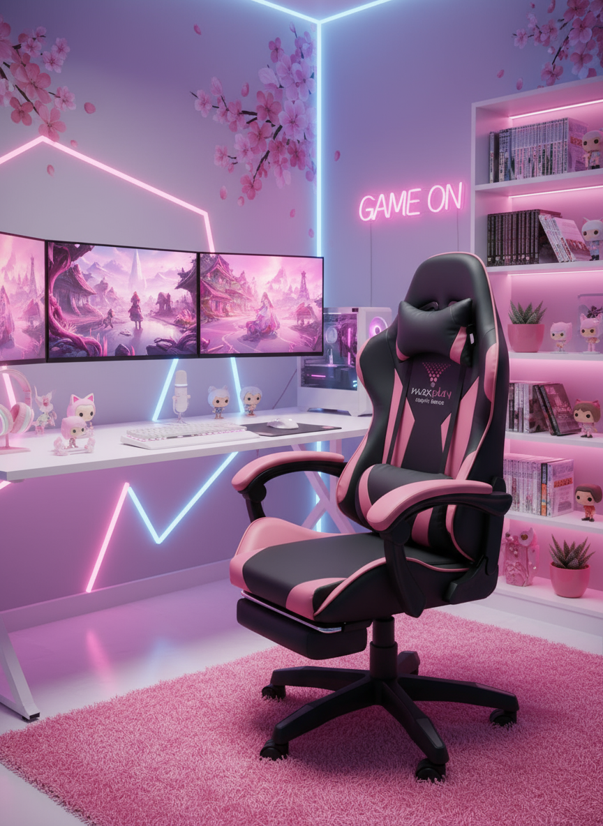 Silla Gamer Vibracion Lumbar Negro/Rosa