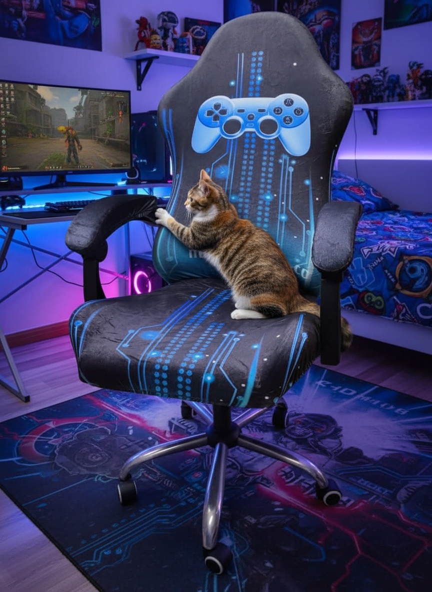 Dale nueva vida a tu silla gamer Transforma tu silla gamer con estilo y funcionalidad. Nuestra funda de color sólido con diseño envolvente le da un look completamente renovado a tu espacio, mientras protege y prolonga la vida útil de tu silla. Práctica, estética y con carácter.