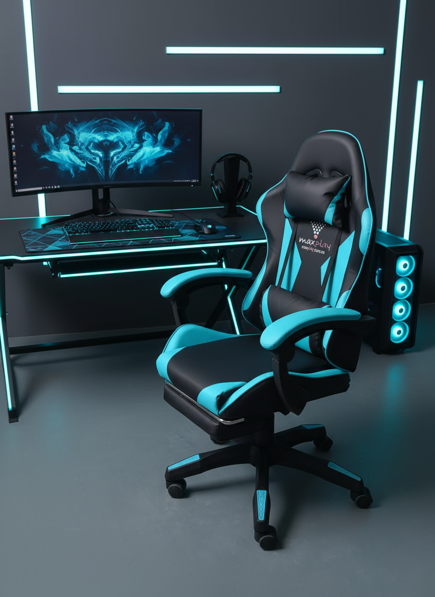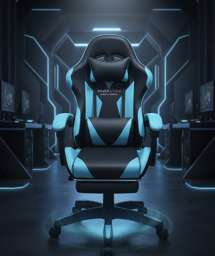 MaxGamer Vibracion Lumbar Negro Azul Celeste + Reposapiés
