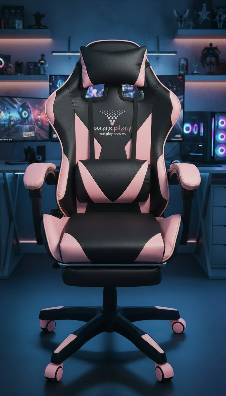 MaxGamer Vibracion Lumbar Negro/Rosa + Reposapies