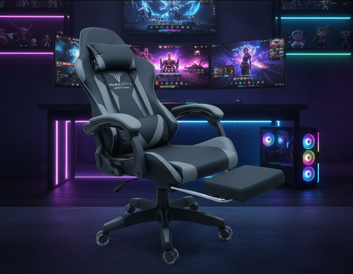 MaxGamer Vibracion Lumbar Gris/Negro + Reposapiés
